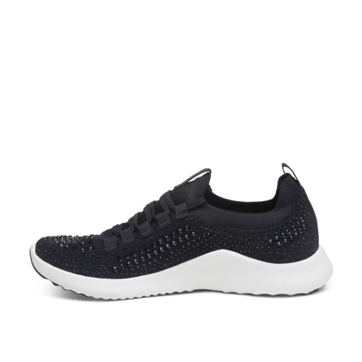 Our Most Popular Sneaker With Arch Support, Now With Sparkle! These Lightweight Kicks Provide The Comfort You Need For Long Periods On Your Feet. With Pressure Relief Cushioning, A Padded Heel, And Stretchy Knit Material, The Carly Sparkle Will Keep You Comfortable On Your Most Active Days. The Aetrex Orthotic System Is Built-In To Every Pair:Our Insole Features Arch Support That Helps To Stabilize Your Body, Align Your Feet And Relieve Common Foot Pain (Ie.Plantar Fasciitis, Heel Pain & Arch Pain)Our Insole Features Ultrasky&Trade; Cushioning To Provide Pressure Relief & Comfortour Insole Is Lined With Microfiber Treated With Antimicrobial Technology To Help Fight Every Day Odorsdetails:Adjustability: Lacesupper Material: Stretchy Knit With Embellished Rhinestonesmidsole Material: Lightweight Ultrasky&Trade; For Comfortoutsole Material: Rubber Pods For Durabilityremovable Insole: Yesheel Height: .8″Padded Heel For Extra Cushioningmachine Washable