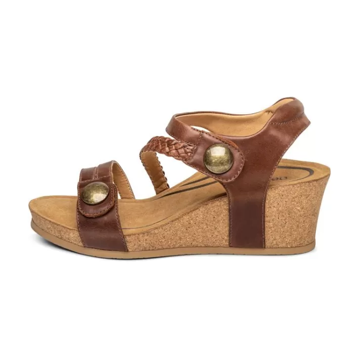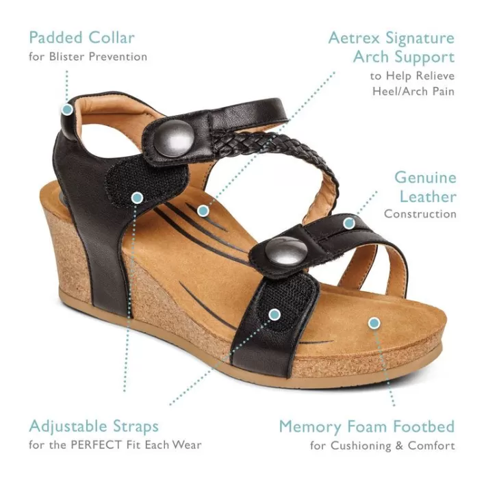 If You Love The Design Of Jillian, Then You Will Love The Avril! This Fully Adjustable Wedge With Arch Support Features Memory Foam Cushioning And A Padded Collar For Extra Comfort. The Avril Features Gold Accents And Braided Strap To Elevate Any Outfit. The Aetrex Cobra Orthotic System Is Built-In To Every Pair:Arch Support Helps To Stabilize And Align Feetarch Support Helps To Relieve Common Foot Pain & Plantar Fasciitisthe Memory Foam Footbed Provides Cushioning & Comfortdetails:Adjustability: Hook & Loop Closuresupper Material: Genuine Leathermidsole Material: Memory Foam And Ultra-Light Corkfootbed Lining Material: Soft Microfiber Treated With Antimicrobial Technology To Help Fight Every Day Odorsoutsole Material: Blown Rubber For Lightweight Durabilityremovable Insole: Noneheel Height: 2.5″Padded Collar For Extra Cushioning