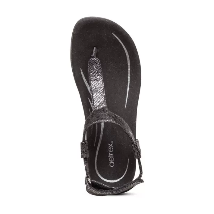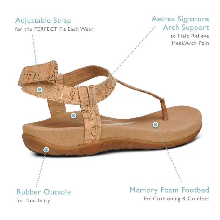 Add Some Sparkle To Your Day With The Jane! This Thong Sandal With Arch Support Is A Great Way To Dress Up Your Summer Outfit From Day To Night. The Combination Of A Cushioned Footbed And Adjustable Strap Will Provide All-Day Comfort. The Aetrex Orthotic System Is Built-In To Every Pair:Arch Support Helps To Stabilize And Align Feetarch Support Helps To Relieve Common Foot Pain & Plantar Fasciitisthe Memory Foam Footbed Provides Cushioning & Comfortdetails:Adjustability: Hook And Loop Closure And Stretchy Gore For Easy On/Offupper Material: Faux Leathermidsole Material: Memory Foam For Comfortfootbed Lining Material: Soft Microfiber Treated With Antimicrobial Technology To Help Fight Every Day Odorsoutsole Material: Rubber For Durabilityremovable Insole: Noneheel Height: 1.1″