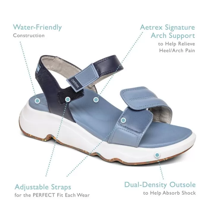 Step Into Comfort With The Whit! These Water-Friendly Sport Sandals With Arch Support Feature Cushioning Throughout The Footbed And Adjustable Straps For The Perfect Fit. Each Step In The Whit Feels Like You Are Walking On Clouds! The Aetrex Orthotic System Is Built-In To Every Pair:Arch Support Helps To Stabilize And Align Feetarch Support Helps To Relieve Common Foot Pain & Plantar Fasciitisultrasky&Trade; To Cushion And Provide Superior Comfortcontoured Rearfoot To Cradle Your Heel And Relieve Pressuresupport Pod To Help Relieve Forefoot Pressuredetails:Adjustability: Hook & Loop Closuresupper Material: Faux Leather Treated With Antimicrobial Technology To Help Fight Every Day Odorsmidsole Material: Lightweight Ultrasky&Trade; For Comfortoutsole Material: Rubber For Durabilityremovable Insole: Noneheel Height: 1.8″Water-Friendly