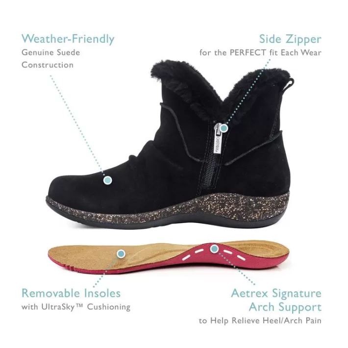 Embrace The Chilly Weather With The Remi! Crafted From Genuine Suede, This Faux Fur Collared Winter Boot Combines Cozy Comfort With A Chic Design. The Arch Support And Ultrasky&Trade; Cushioning Help Provide Relief From Common Foot Pains While Keeping You Stable And Aligned. The Convenient Side Zipper Allows For Easy On And Off, While The Removable Insole Offers Customizable Comfort. Stay Stylish And Comfortable In Your New Favorite Boots During The Cold Season.