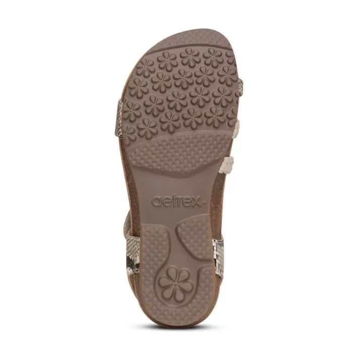 Our #1 Best-Selling Sandal For A Reason. The Jillian Is Constructed With Aetrex Signature Arch Support That Is Strategically Placed To Align Your Body. This Fully Adjustable Sandal Features Memory Foam Cushioning, Strategically Placed Straps To Help Relieve Bunion Discomfort, A Padded Heel For Extra Comfort, And An Ultra-Light Cork Midsole To Help Make It Much Easier To Walk Around All Day. The Signature Braided Detailing Makes The Jillian Both Comfortable And Stylish For All Your Summer Adventures. The Aetrex Orthotic System Is Built-In To Every Pair:Arch Support Helps To Stabilize And Align Feetarch Support Helps To Relieve Common Foot Pain & Plantar Fasciitisthe Memory Foam Footbed Provides Cushioning & Comfortdetails:Adjustability: Hook & Loop Closuresupper Material: Genuine Leathermidsole Material: Memory Foam And Ultra-Light Corkfootbed Lining Material: Soft Microfiber Treated With Antimicrobial Technology To Help Fight Every Day Odorsoutsole Material: Blown Rubber For Lightweight Durabilityremovable Insole: Noneheel Height: 1.1″Met Bar Pod To Help Relieve Ball-Of-Foot Discomfortpadded Collar For Extra Cushioning