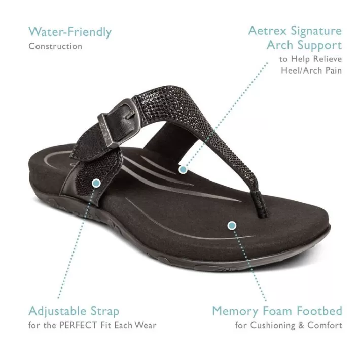 Elevate Your Warm Weather Outfit With The Rae! This Shimmery Thong Sandal With Arch Support Features A Memory Foam Footbed And An Adjustable Strap To Help You Get The Perfect Fit! The Aetrex Orthotic System Is Built-In To Every Pair:Arch Support Helps To Stabilize And Align Feetarch Support Helps Relieve Common Foot Pain & Plantar Fasciitisthe Memory Foam Footbed Provides Cushioning & Comfortdetails:Adjustability: Hook & Loop Closureupper Material: Faux Leatherfootbed Lining Material: Soft Microfiber Treated With Antimicrobial Technology To Help Fight Every Day Odorsoutsole Material: Rubber For Durabilityremovable Insole: Noneheel Height: 1.1”